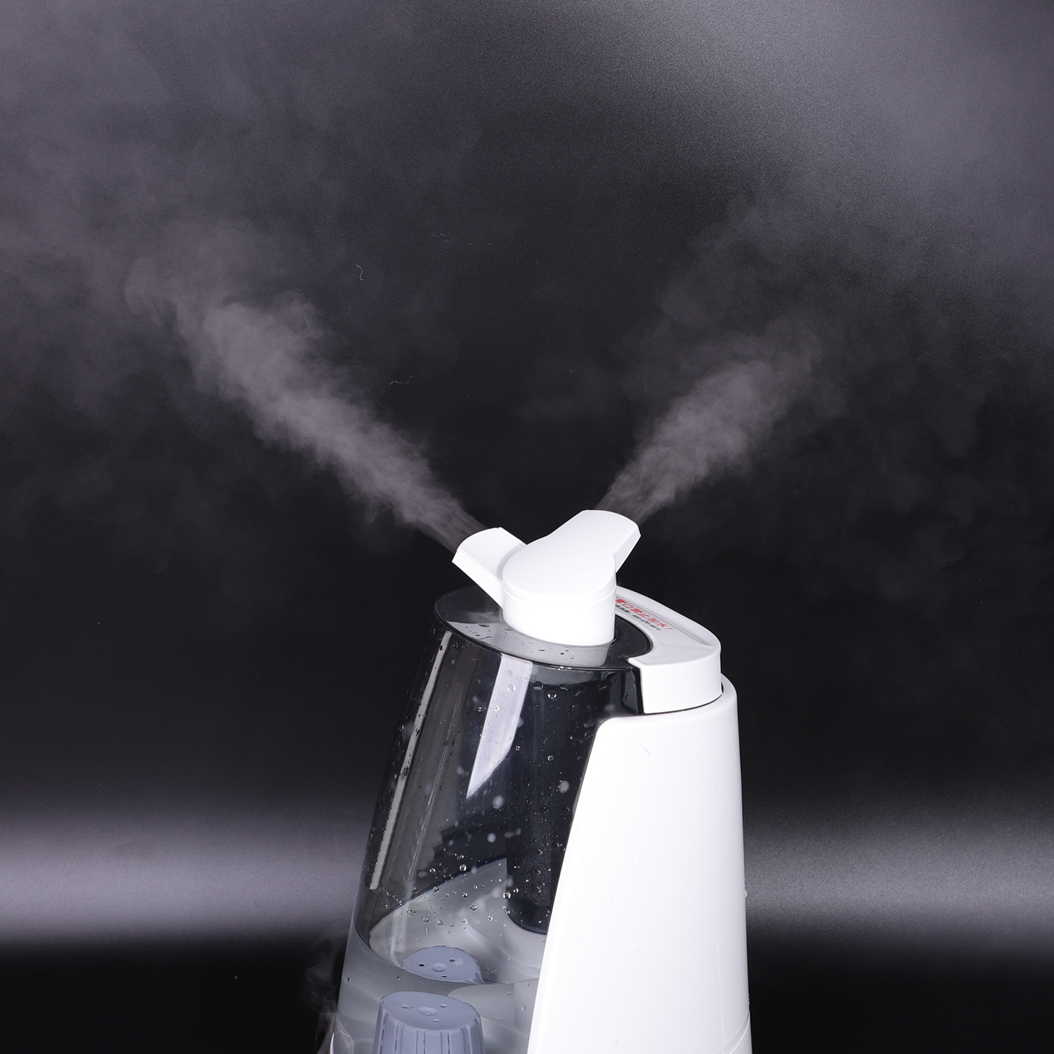 Ten nawilżacz z ciepłą i chłodną mgłą ma regulowaną wydajność mgły, podwójną dyszę 360 stopni, dużą pojemność, automatyczne wyłączanie, gdy zbiornik na wodę jest pusty, opcjonalnie filtr żywiczny, opcjonalnie wersja chłodnej i ciepłej mgły.